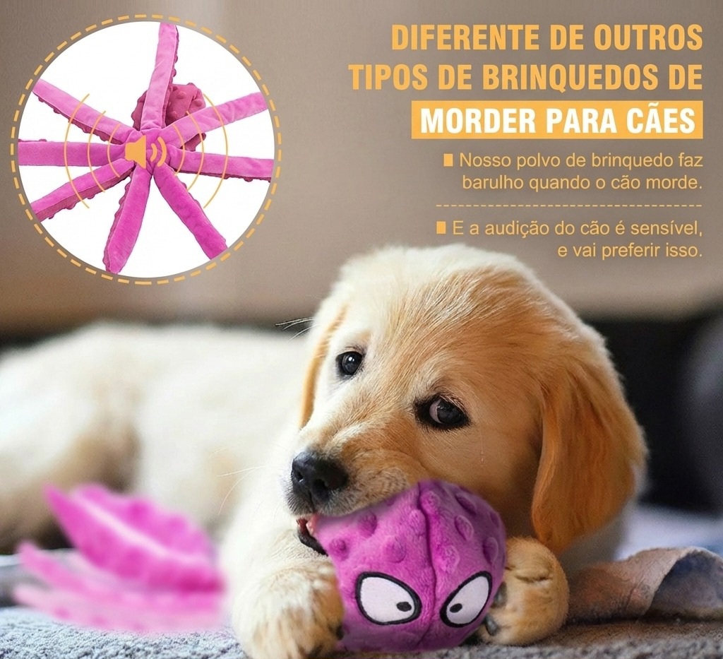 O Pawzy OctoPlay foi criado para transformar a brincadeira do seu cachorro em um momento de diversão, estímulo e muito carinho. Com formato de polvo e tentáculos flexíveis, ele desperta a curiosidade natural do pet e convida para horas de interação.